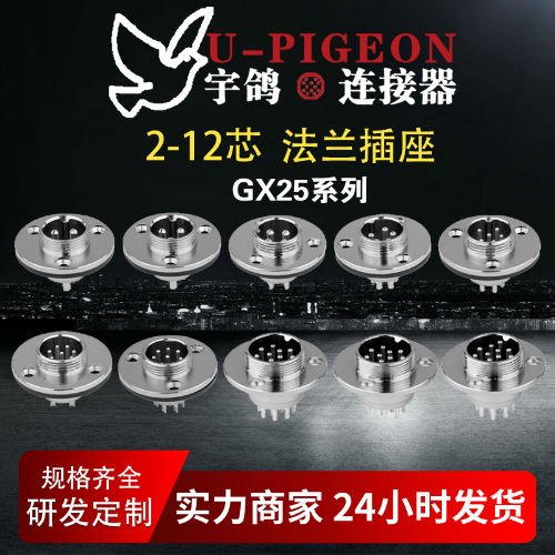 GX25航空插座2-12芯法兰盘航空插头DF25航空插M25口罩超声波专用